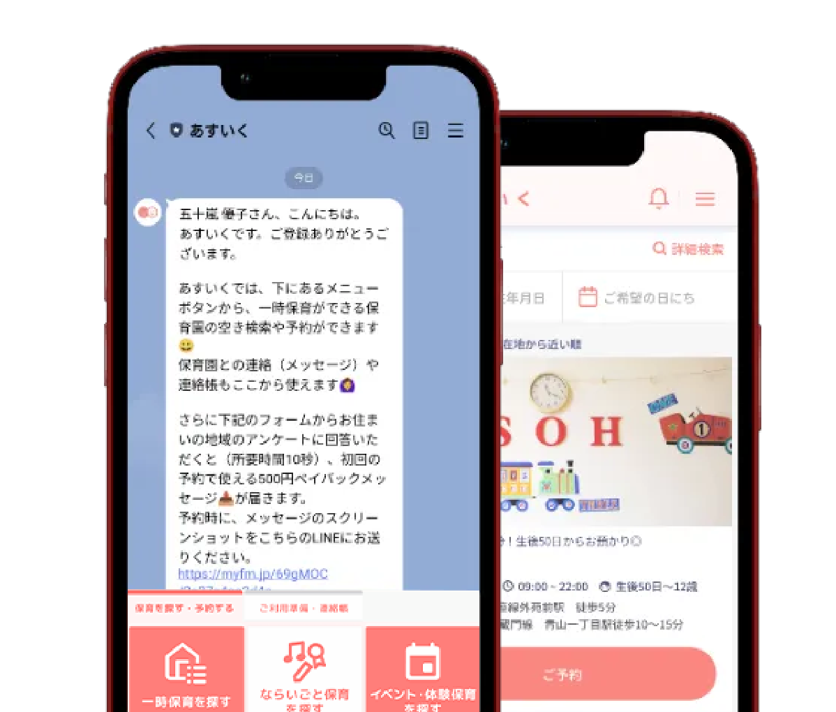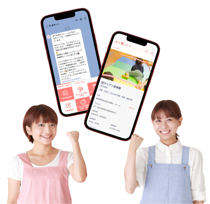 あすいくなら、保育料と空きを自分で確認、待ち時間なくその場で予約できます。